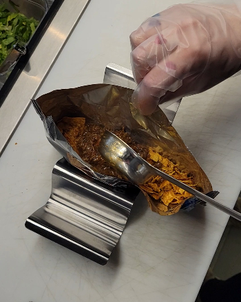 Fresh crunchy tostada wrapped with choice of protein and toppings. Served with side salsa + warm queso cheese sauce! Staff Creator: Emma